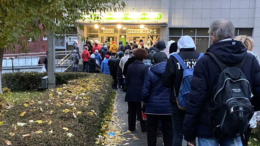 В Перми утром в среду 6 октября у городской поликлиники №2 на улице Братьев Игнатовых образовалась огромная очередь из пациентов. Как сообщают очевидцы в социальных сетях, это очередь из пациентов, которые находится на больничном, так как сейчас в поликлинике принимают только их. На фотографии видно, как десятки человек ожидают своей очереди, чтобы попасть в поликлинику.