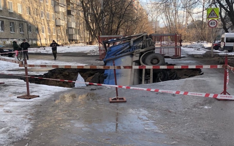 По словам очевидцев, водитель грузовика не пострадал. На место приехали коммунальные службы. В настоящее время место происшествия огорожено сигнальной лентой. Сейчас машину предстоит вытащить из провала.