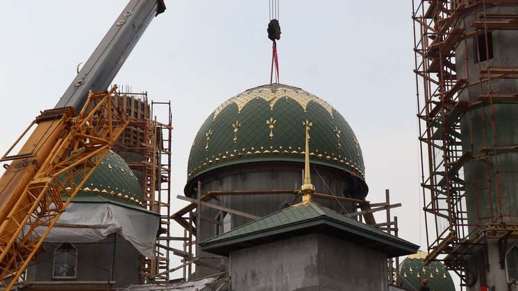 Напомним, первый камень в основание мечети был заложен ещё в 1999 году. Но строительные работы на объекте стартовали только в 2019 году. На сегодня мечеть завершена на 70%. Возводятся минареты, идёт внутренняя отделка помещений и благоустройство территории. Работы ведутся на пожертвования прихожан и меценатов.