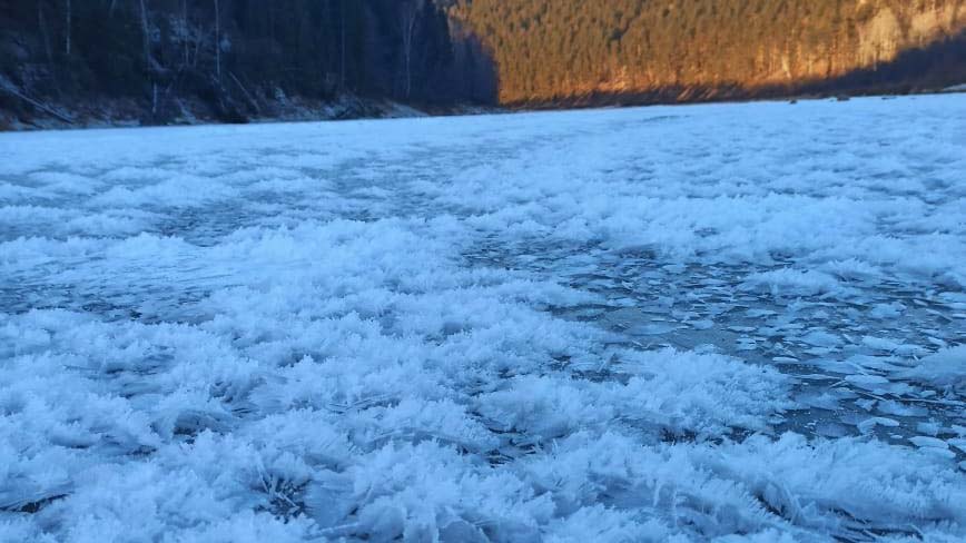 Отмечается, что такие цветы появляются при температуре льда около нуля и температуре воздуха ниже -20°, а также при полностью безветренной погоде. В результате e самой поверхности льда образуется слой, перенасыщенный влагой. Водяные капельки при резком охлаждении кристаллизуются. И буквально за несколько секунд лепестки вырастают до десяти сантиметров.