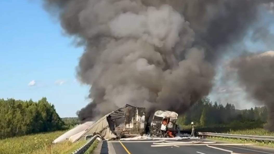 Вечером 20 июля на Краснокамской объездной дороге произошло ДТП с участием двух большегрузов, после столкновения машины загорелись. Очевидцы сообщили о затрудненном движении и выложили в соцсети кадры с места происшествия.