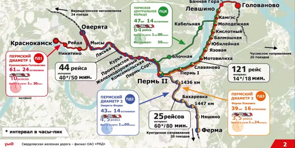 Всего в рамках наземного метро планируется создать 46 остановок между Пермью и Краснокамском, два пересадочных узла, пять остановок на Пермском кольцевом маршруте и шесть железнодорожных развязок. Реализация проекта запланирована на 2022-2030 годы. В 2021 году стоимость проекта оценивалась в 28,3 млрд рублей.