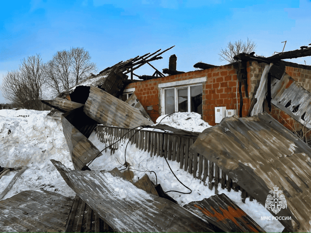 В Еловском округе в селе Брюхово 25 февраля ночью начался пожар. Горел двухквартирный кирпичный жилой дом.