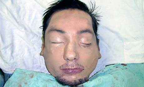 Приметы убитого: на вид 30-40 лет, рост 170-175 см, телосложение худощавое, волосы темно-русые, темная борода. Под левым глазом имеется горизонтальный шрам длиной 2,5 см, ее один шрам - на лбу слева длиной 4 см, прокол в левом ухе. На убитом был пуловер фиолетового цвета, темно-синие джинсы, черный ремень из кожзаменителя, на шее - деревянный крестик на толстой темной нитке.