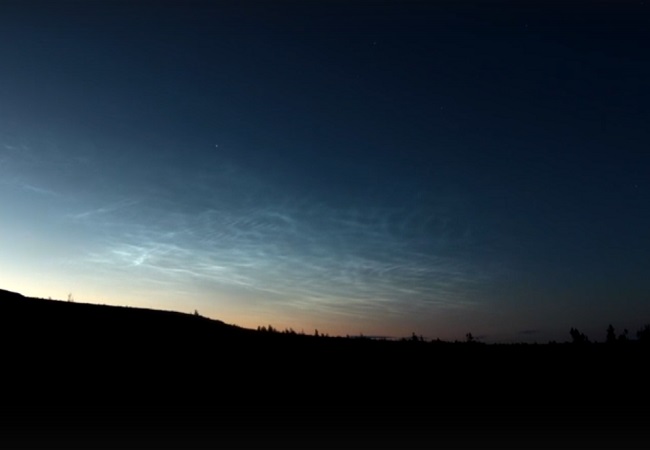 Серебристые облака – это самые высокие облачные образования в земной атмосфере, которые образуются на высотах 70–95 км. Их еще называют полярными мезосферными облаками или ночными светящимися облаками. Даже днем на фоне чистого неба эти облака не видны – они очень тонкие, «эфирные». Лишь только сумерки и ночная тьма их делают заметными для наземного наблюдателя. При этом сквозь них хорошо видны звезды.