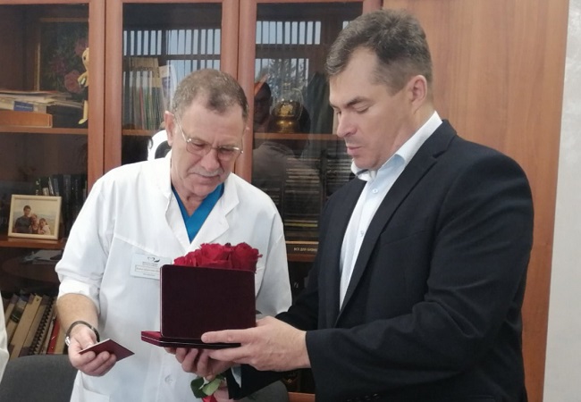 Врач-эндоскопист из Перми Виктор Бражкин получил звание «Заслуженный врач Российской Федерации». С присвоением почетного звания пермского врача поздравил заместитель министра здравоохранения Пермского края Денис Михайленко, и вручил коллеге нагрудный знак.